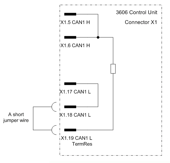 Example1. Internal termination resistor connection in CAN1 (the resistor is typically 120 Ω)